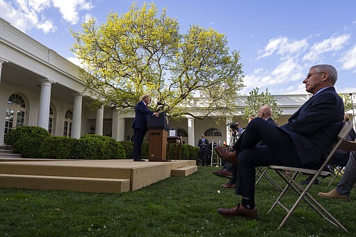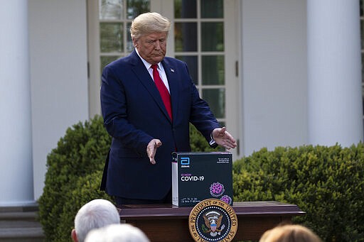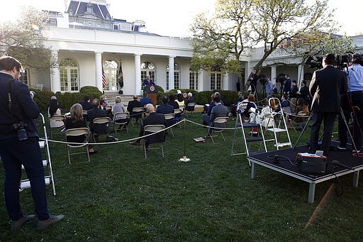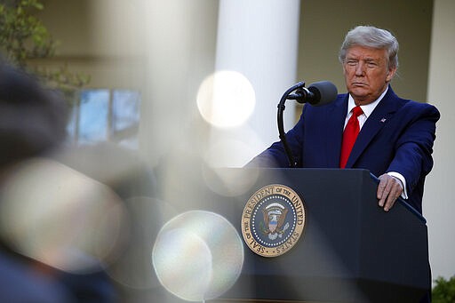 WASHINGTON (AP) — For a few moments in the Rose Garden, the coronavirus pandemic is a bucking bronco with President Donald Trump on its back. His arm swings an invisible rope. He seems to be hanging on for dear life.