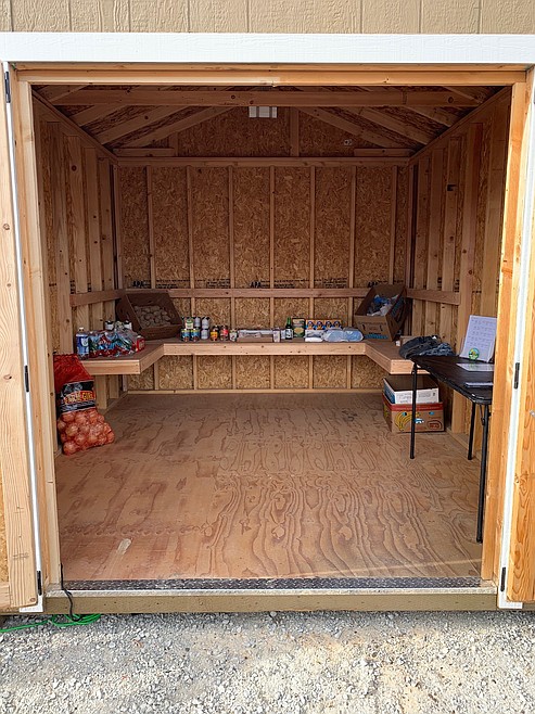 The Help Shed is located on the grounds of The Shed Dealer, a business in Ponderay on the highway owned by Steve Johnson. Johnson sells animal shelters, mini-barns, storage barns, playhouses and other kinds of sheds, but one shed is open wide for people in immediate need to pick up emergency meals.