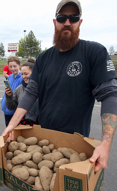 The same group gave away about 15,000 pounds of potatoes last weekend at two locations, Priest River and Coeur d’Alene.