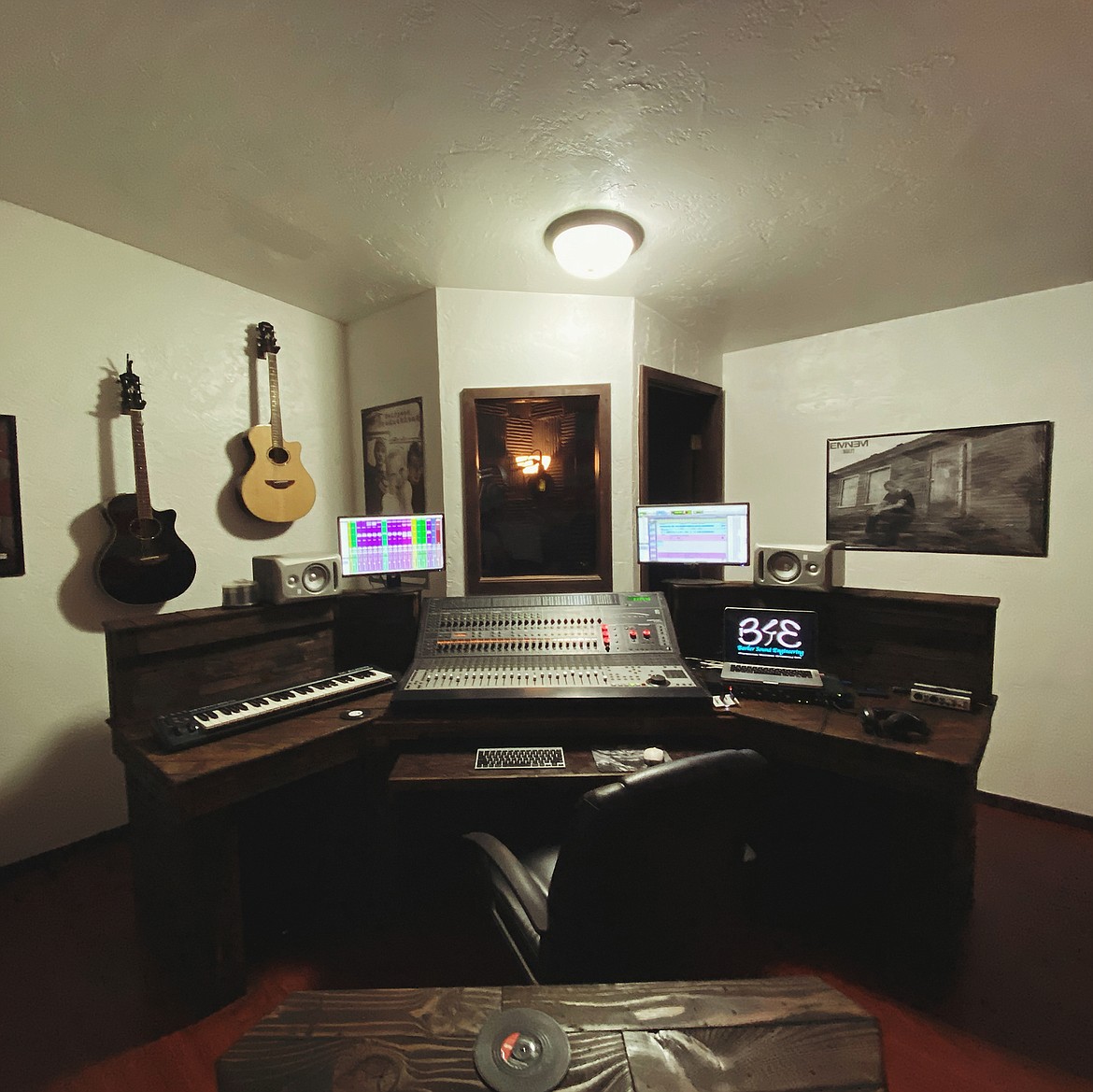 One of Tyler’s first jobs was in construction when he was 18 years old. In merging his music production knowledge from college, he was able to set up a control room, ISO booth and tracking room with acoustics that would meet technical standards. He also transformed their closet into part of the studio. Once the studio was complete, Tyler built a desk and found a console from a studio in California that was being replaced with a newer model. Tyler’s new mission was to decorate the studio with quality equipment, looking out of state to complete his miscellaneous collection.