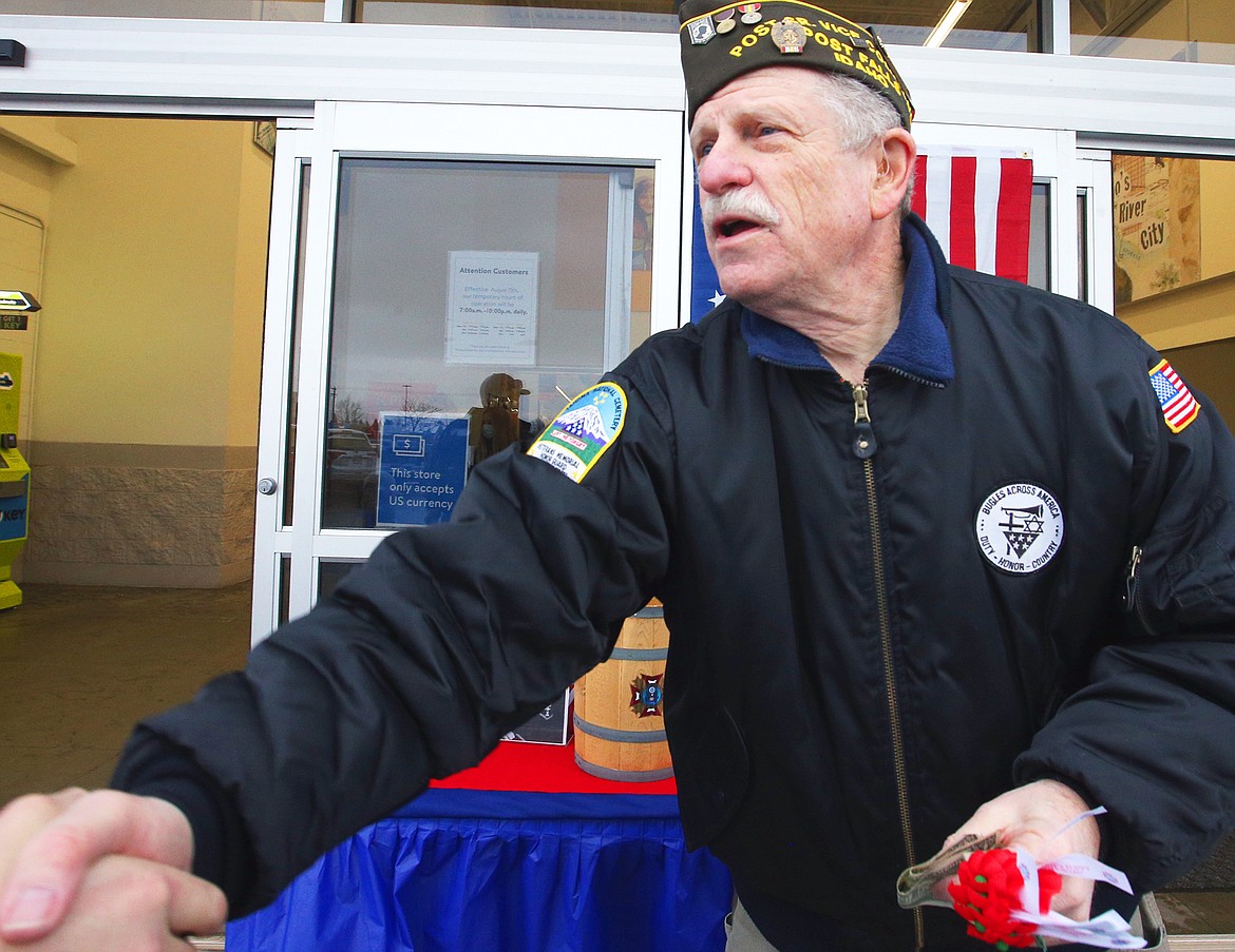 Shay, senior vice commander of Veterans of Foreign Wars & Auxiliary Post 3603 in Post Falls, manned his post in front of the discount store for about five hours.