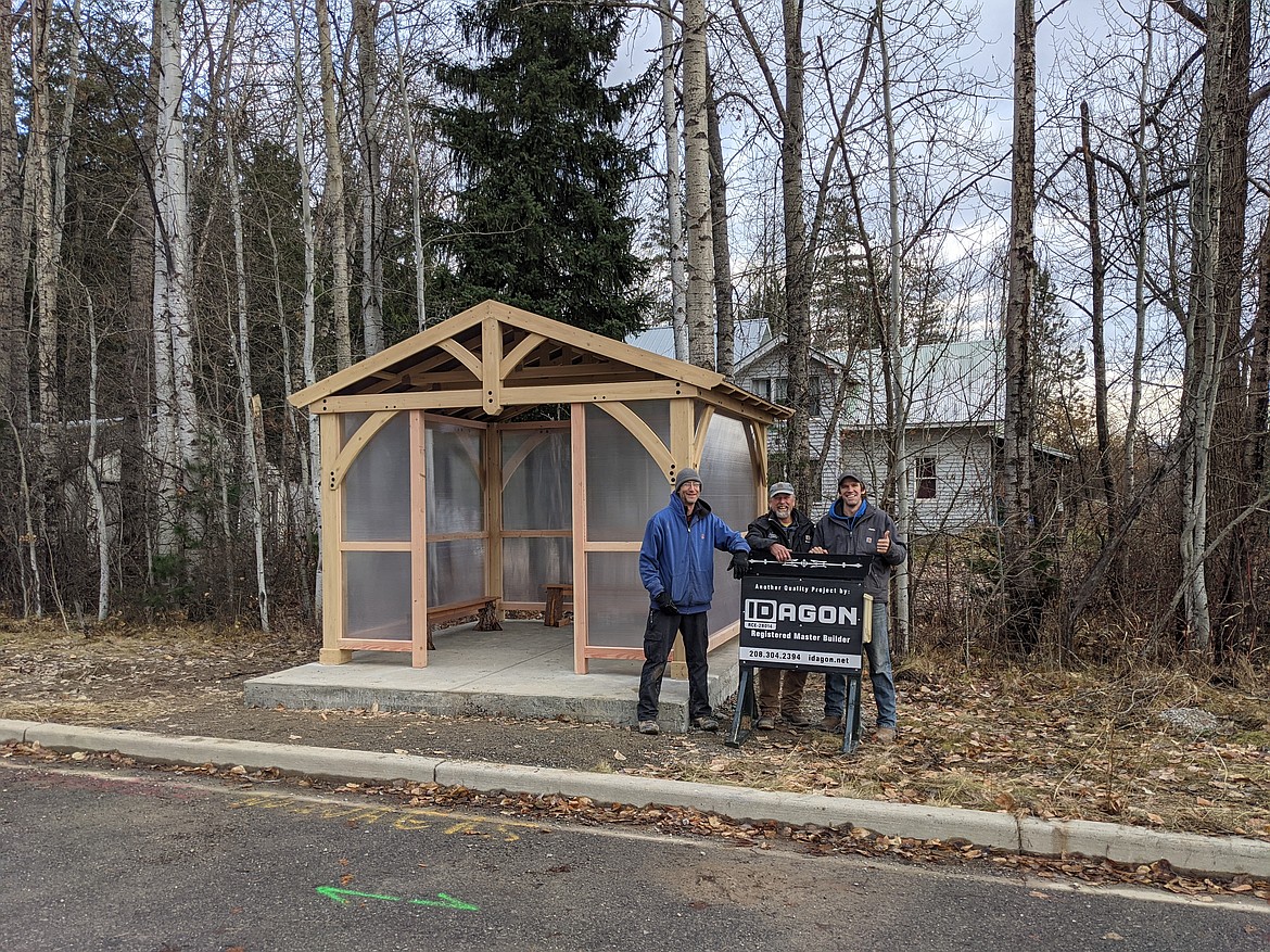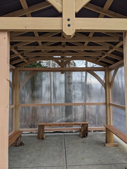 The company had also done a structure at the Selkirk School of Sandpoint for outdoor learning, Schuck said, so the bus stop shelter was similar with just a few differences. The bus stop has clear polycarbonate sheeting on the side so children are protected and can be seen from outside, he said, and a recently added solar light.
