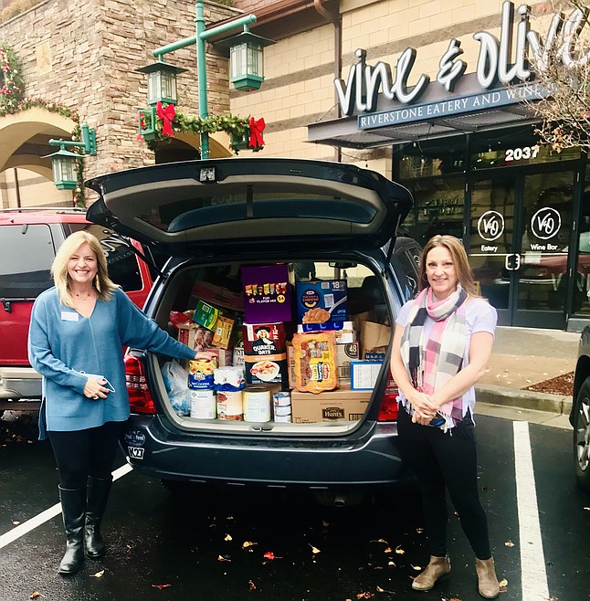 In celebration of its Riverstone location's third anniversary, Vine & Olive Eatery and Wine Bar donated pounds of rice, soup, pancake mix, and other community-raised goodies for St. Vincent's Father Bill's Kitchen. Carrying on the tradition from years prior, the owner and operator of Vine & Olive Naomi Boutz's donations were used at Father Bill's and senior facilities.