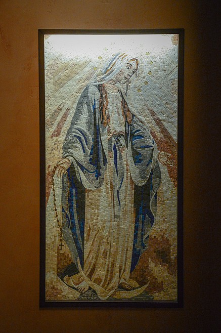 Another prominent feature is a mosaic of Mary praying the Rosary located off the stairs. It is one of two mosaics from Lebanon, Zorn said.