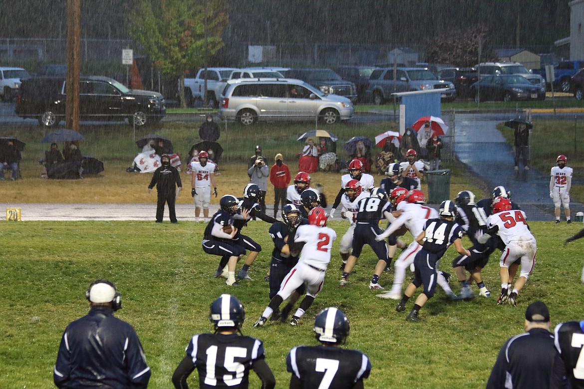 Bonners Ferry, a class 3A team, hosted the larger, 4A Bears on a gloomy and rainy day that played a factor in the game; due to rain, there were many fumbles and dropped passes.