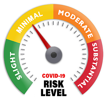"Yellow" indicates minimal COVID risk. School is open five days a week. Masks are required for everyone on school property and in buses. Use of outdoor and large learning spaces, such as gyms and cafeterias, are being maximized. Social distancing is used as is practical.