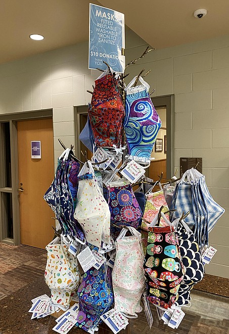 The masks are on display on a tree in the Kroc Center, 1765 W. Golf Course Road, Coeur d'Alene. Ronda said she'll use festive fabric next — Thanksgiving turkeys and surfing Santas.