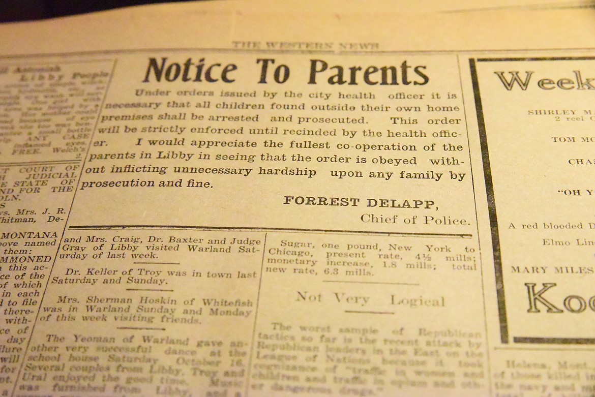 Police Chief Forrest Delapp took out an advertisement in The Western News encouraging parents to cooperate with the health officer. He wanted the order “obeyed without inflicting unnecessary hardship upon any family by prosecution and fine.”