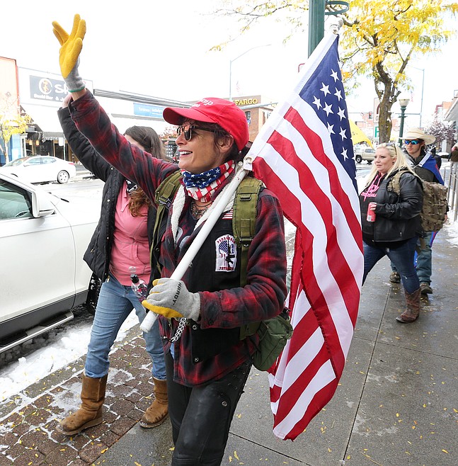 A woman who gave her name as “Butterfly” from Spokane carried a flag on the parade route and considered Coeur d’Alene her town, as well. She said she was “pro-life, pro-liberty and pro-Constitution.”