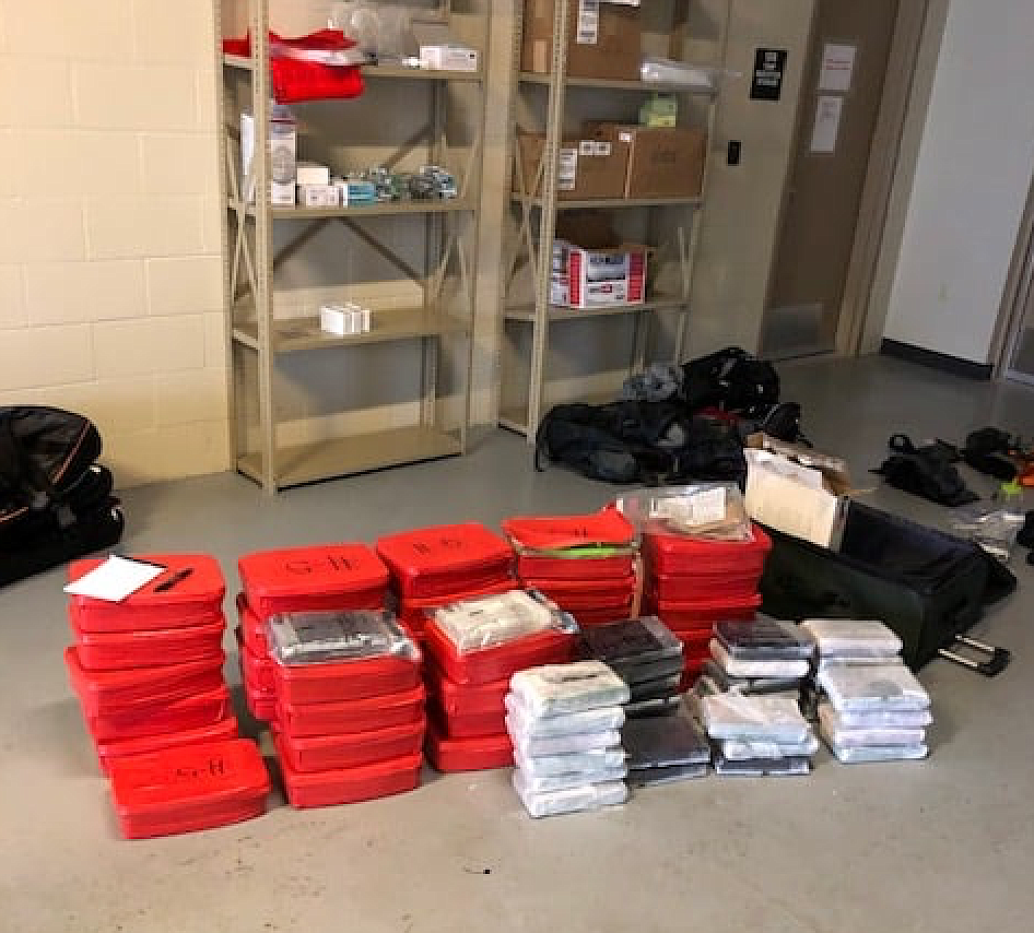 Border Patrol agents were alerted to suspicious activity on a remote forest service road near the Canadian border. An agent responded to the area and located two individuals who were concealing themselves. As the agent approached the individuals, they fled into Canada. The agent located the duffle bags near the location where the individuals were hiding. The duffel bags were found to contain 84 pounds of cocaine, valued at approximately $1.2 million and 198 pounds of methamphetamine, valued at approximately $960,000.