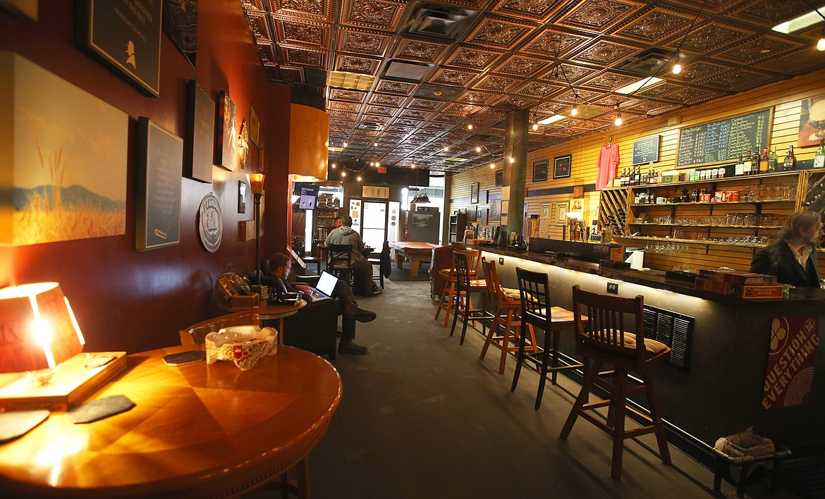 His wife, Mary, stops by with their two dogs, Stout and Porter (yes, named after beer), who apparently are also regulars as they wander around and plop down on the floor.