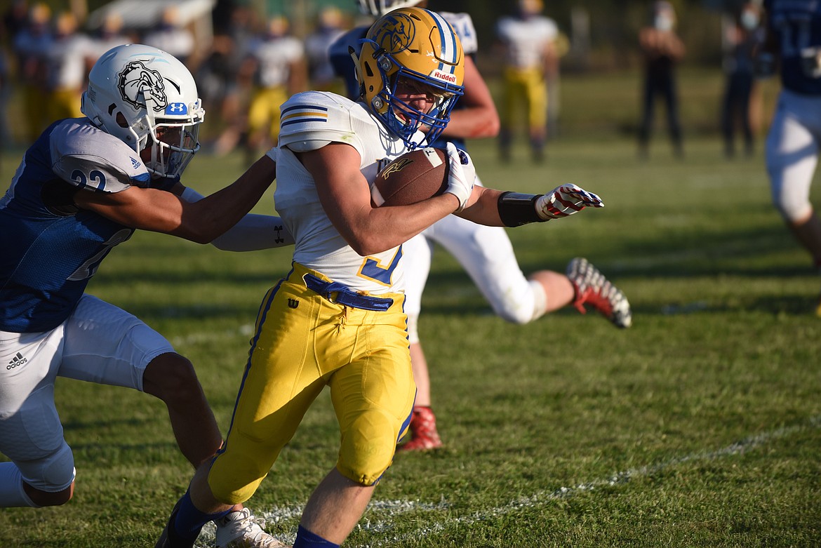 A key defensive play and two touchdowns in the last 22 seconds of the first half keyed the Thompson Falls Blue Hawks to a 38-32 win over the Mission Bulldogs as the 2020 high school football season kicked off in St. Ignatius.
