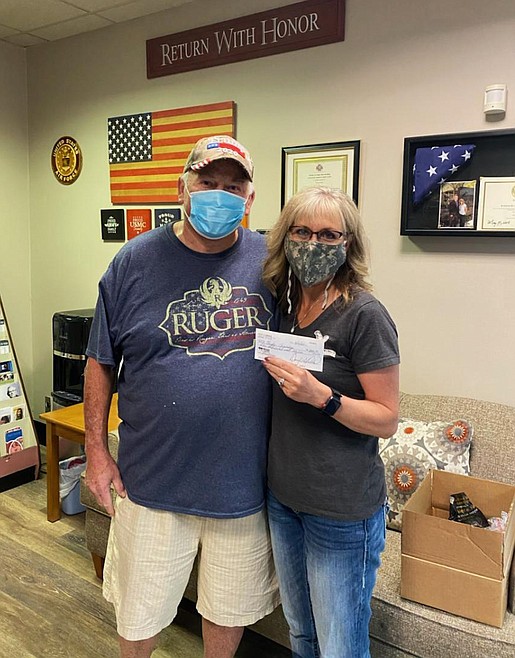 Sheldon, a Navy veteran and Hayden resident, was pleased to report that his fundraising journey raised $2,075 for 9/11 Health Watch and $1,080 for Newby-Ginnings of North Idaho. He presented the check to Newby-Ginnings founder and good friend Theresa Hart on Monday.