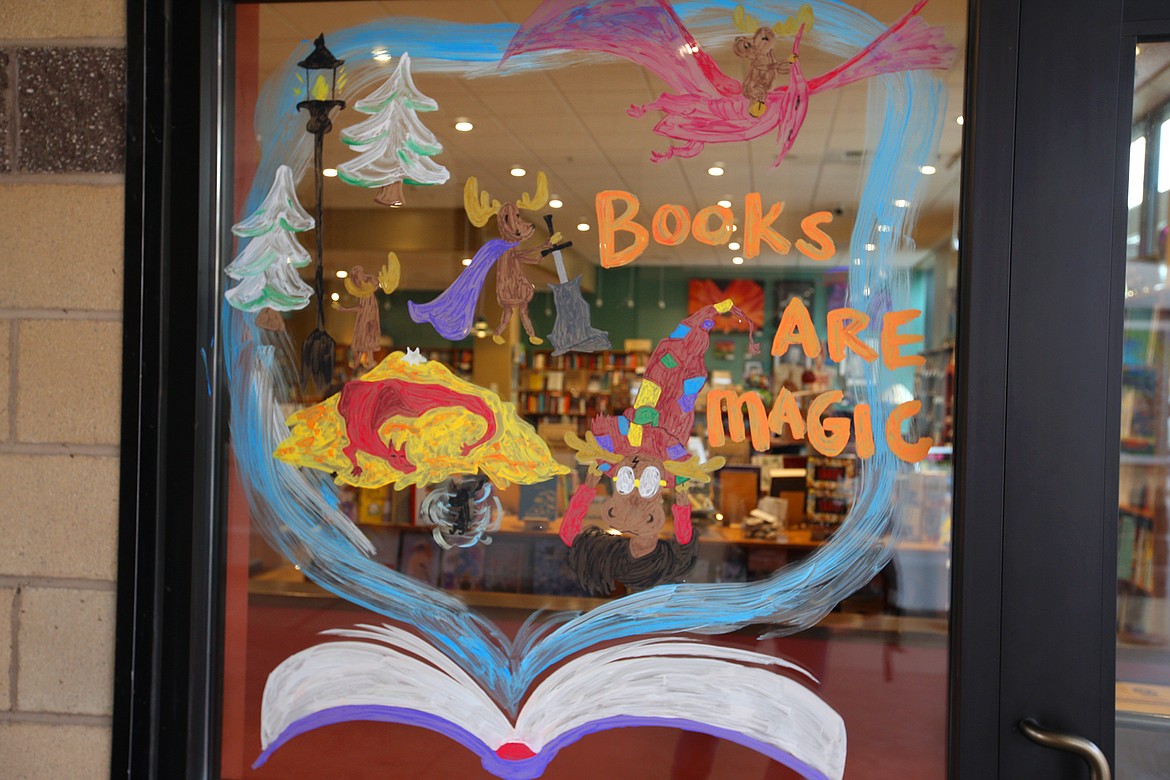 They looked inside The Well-Read Moose. Checked out Escape Outdoors. Ventured across to Buckle and paused in front of Vine and Olive. Later, they passed Bear Paw Cookies and a sign around the corner for “Tom Sawyer Country Coffee.”