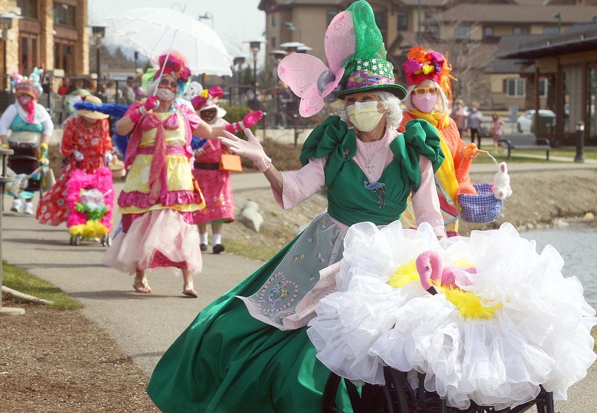 COEUR d’ALENE — The Red Hot Mamas danced in their Sunday best to fun, upbeat songs on Good Friday. They smiled, they waved, they shouted “Happy Easter.” Their goal was simple: Make people happy.