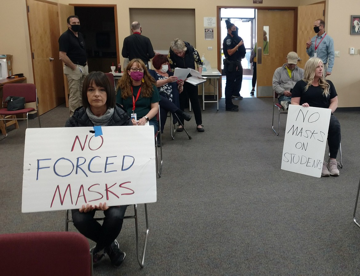 The board voted in the exact same fashion later in the meeting when deciding if masks should still be mandatory for teachers and staff.