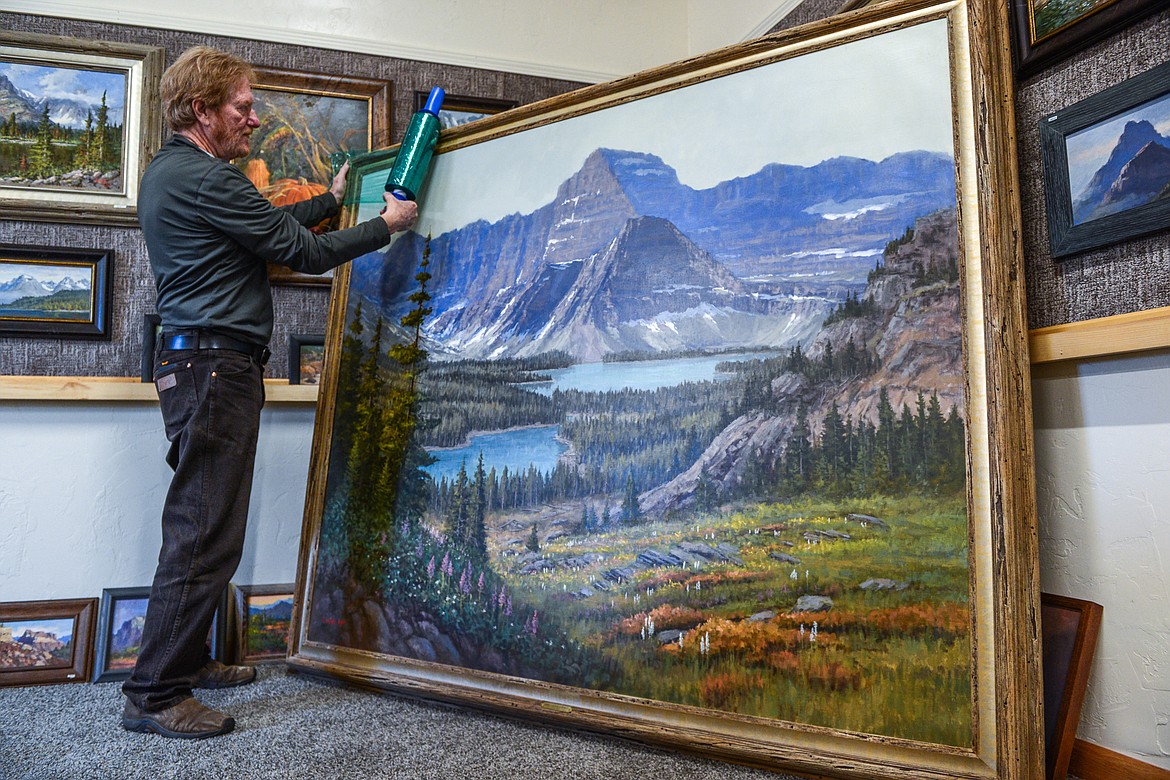 On Tuesday, Ogle will drive from Kalispell to Helena to deliver his landscape painting, "Confluence of Josephine and Grinnell Lakes.” There, the massive piece of art will be displayed prominently inside the Montana State Library.