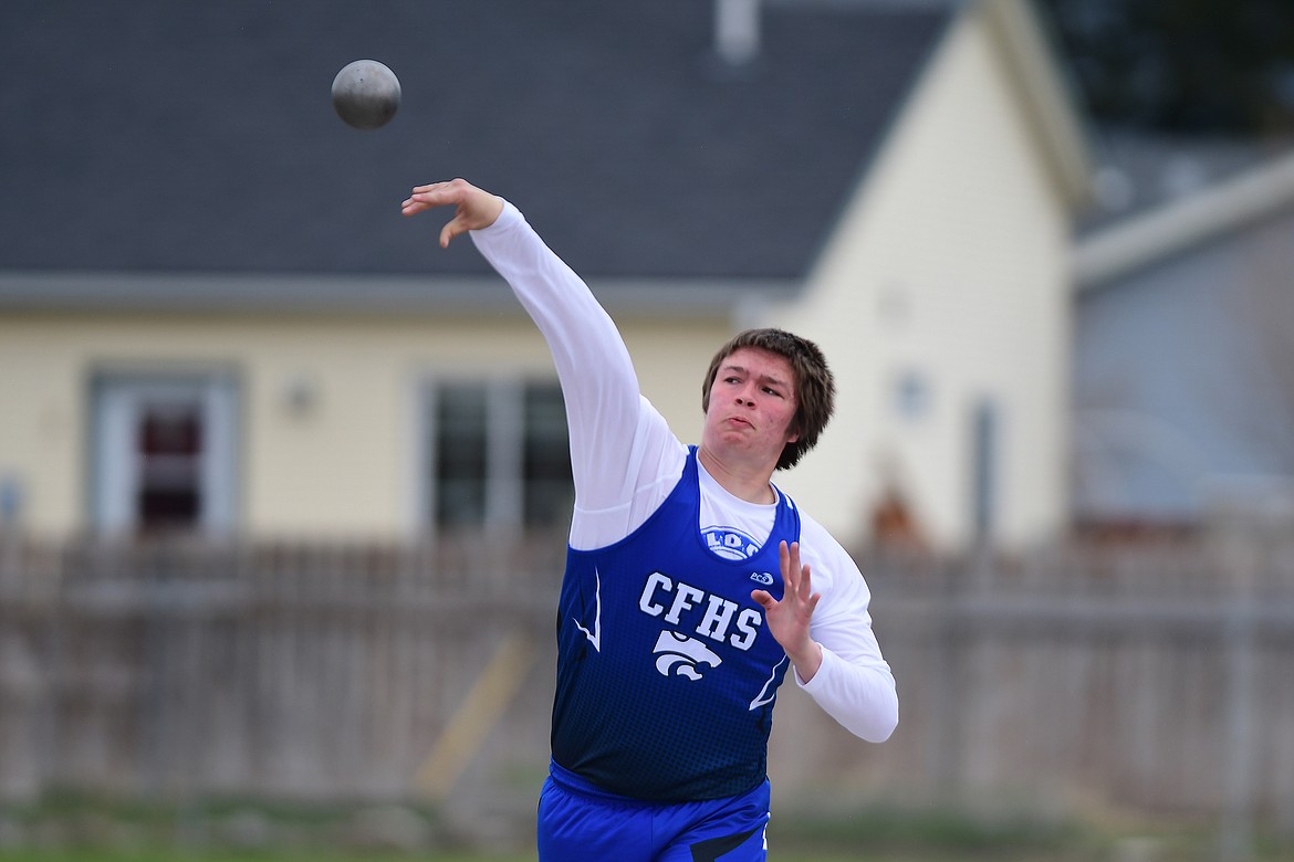 Discus — 1, Brock Fisher, CF, 117-6; 2, Payton Cates, Ron, 115-5; 3, Bode Wold, Wfh, 115-2; 4, Redsky Boggs, Brw, 113-11; 5, Trey Andersen, Lib,m 1129-9; 6, Jonathan Perez, Pol, 109-11.