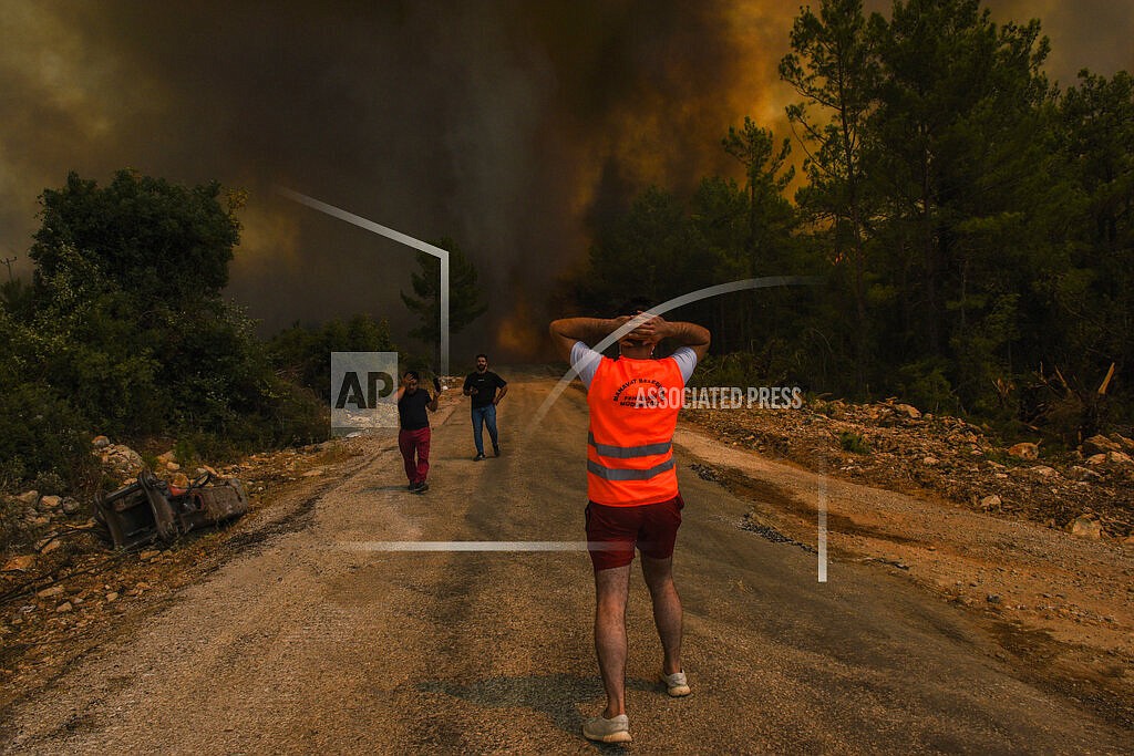 BOZALAN, Turkey — Selcuk Sanli set his two cows loose, put his family’s most treasured belongings in a car and fled his home as a wildfire approached his village near Turkey's beach resort of Bodrum, one of thousands fleeing flames that have coated the skies with a thick yellow haze.
