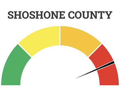 Substantial Risk implies that Shoshone is currently seeing greater than 30 reported daily cases per 100,000 in the population over a seven-day rolling average, reporting a positivity rate greater than 20%, and hospital capacity being at or above 100%.
