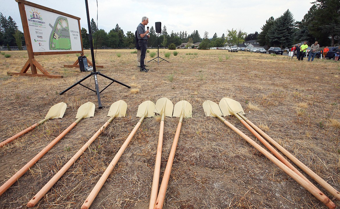 Also participating in the groundbreaking ceremony were Faith Walk Community Fitness Park board members Eric Rockett, Mitchell Martin, and volunteer legal counsel Steve Smith; builder John Young with Young Construction; architect Marcus Valentine with Architects West; and landscape architect Dwight Bershaw with Clearwater Summit Group.