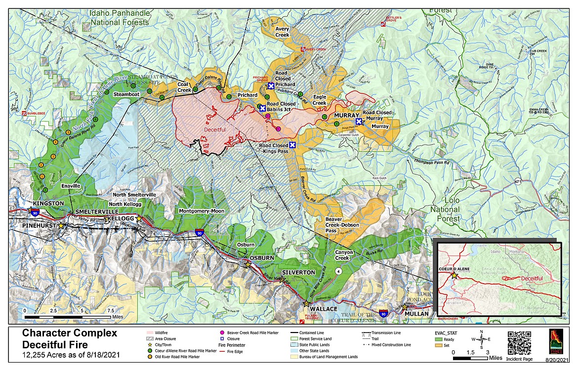 Burning north of the Silver Valley, the Deceitful fire has torched more than 12,000 acres so far — including 4,400 acres of growth from Monday night, when the fire went on a five-mile run that forced residents to evacuate.