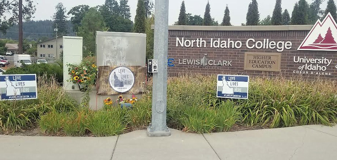 The Love Lives Here CDA team will be distributing "Frisbee Flyers" with their kindness campaign messaging across local beaches during the Labor Day weekend. They also put a display of flowers and positive messaging at the entrance to the North Idaho higher education sector, a location that received the white supremacy posters three times.
