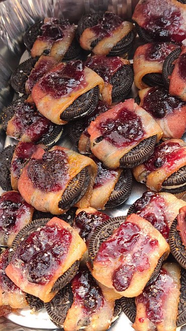 Kina also offers a unique sweet and savory specialty: huckleberry smoked bacon-wrapped Oreos.