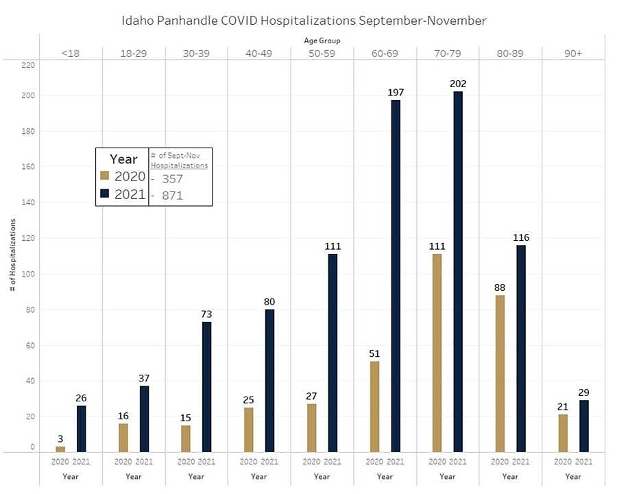 PHD reported 871 COVID-19 hospitalizations September through November, with 75% of those people age 50 and older, while 7% are people under the age of 30.