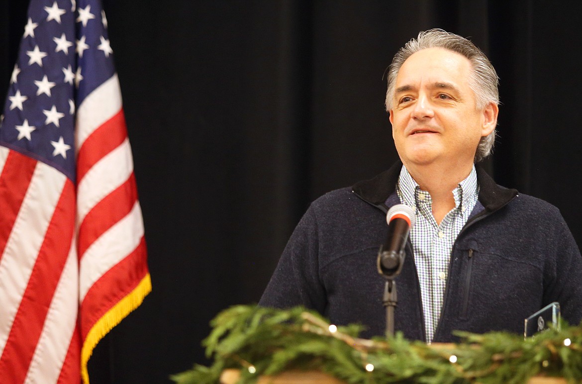 Coeur d'Alene Press Managing Editor Mike Patrick, last year's winner of the Citizen of the Year, highlighted the mayor's role during challenging times as the city's top elected leader.