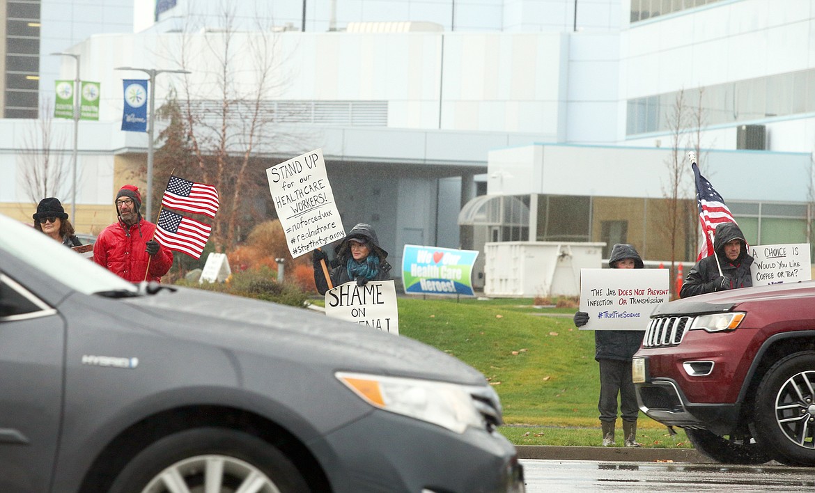One protester who said she was a nurse at Kootenai Health opposed being forced to get the vaccine.