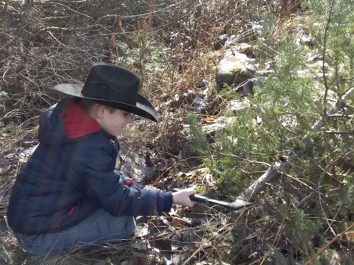 Armed with a hatchet, Gabriel chopped down the three trees himself, and together the kids donated them to the Rathdrum Senior Center.