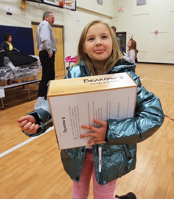 Another donor contributed new Bearpaw boots to the giveaway in the gym that included pleased parents along with cheery children.