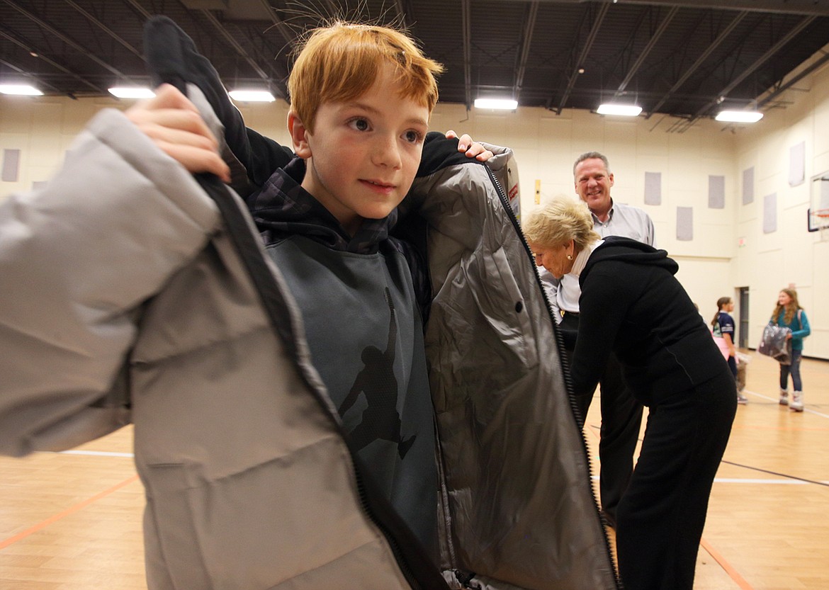 Hunter Schweitzers, 9, tried on a coat he said was a bit too big.