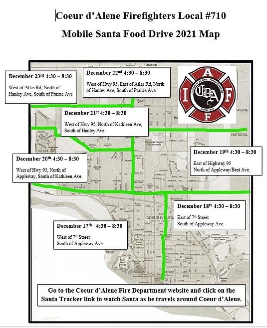 The community can also track Santa's route through the Coeur d'Alene Fire Department website at www.cdaid.org/fire.