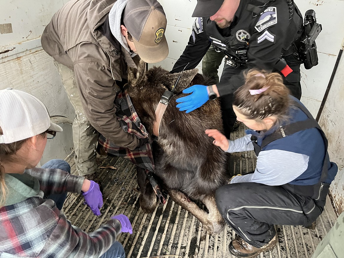 Idaho Fish and Game received reports of a cow and calf moose in the town of Kendrick about 20 miles southeast of Moscow. Conservation officers kept in contact with the city of Kendrick to monitor the behavior and the general location of these moose in hopes that they would choose to leave town on their own accord.
