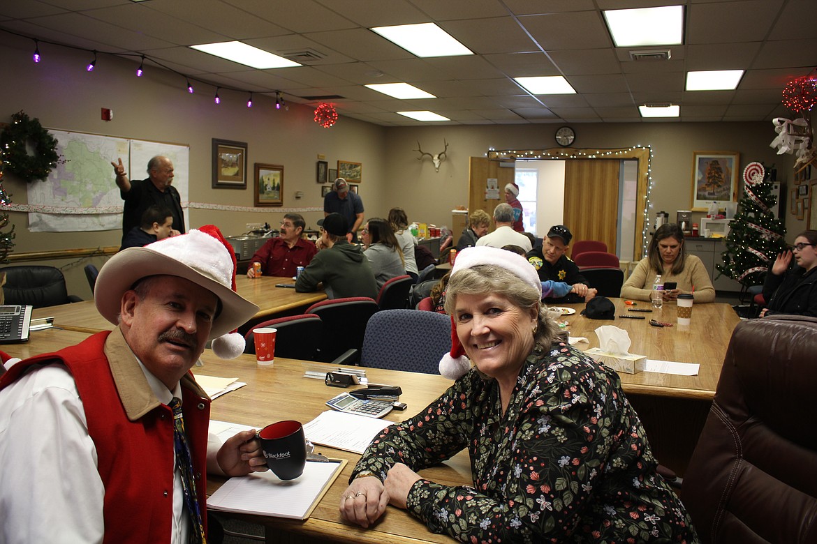 Mineral County Commissioners Roman Zylawy, Laurie Johnston and Duane Simmons (not pictured) hosted their annual Christmas Party for the employees of Mineral County in their Conference Room on Dec. 22.