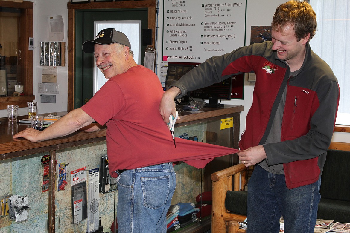 Back in the days of tandem-trainers and no aircraft intercoms, Flight Instructors sat in the cockpit behind student pilots. Because the roar of the engine drowned out Instructors’ voices, they would tugs on the rookie’s shirt tails to command attention before giving instructions. A longstanding tradition includes having the Instructor cut the back out of a newly soloed pilot’s shirt, signifying that the student has learned enough to fly on their own. It’s a tradition that Northern Air still follows; students’ shirt tails are tacked up on the school’s ‘Wall of Fame’ along with their pictures.