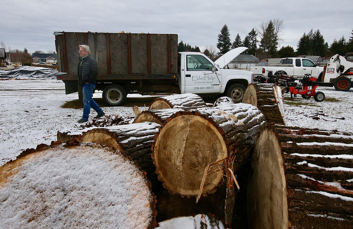 He said the recent windstorm that toppled trees across North Idaho brought many offers of more logs, but Corcoran had to decline them. The property west of U.S. 95 where they keep the logs is slated for development, so his hope is to clear the land and then find another place.