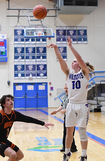 But the Cats gained momentum midway through the second quarter, scoring 14 more points, to the Broncs’ 15, and capping the first half of the game with a half-court swish at the buzzer by Jace Hill, bringing the crowd to their feet and the score to 30-17.