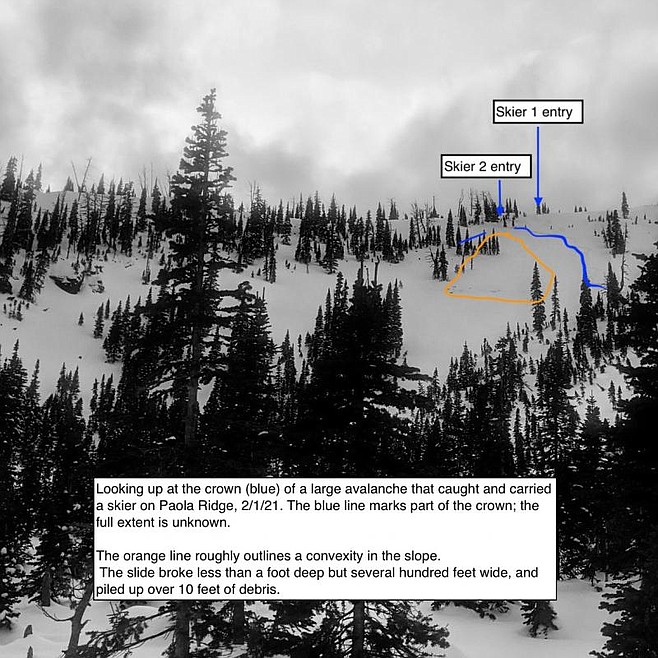 “People have reported near misses, and at least one person was caught, carried and slightly injured,” Nelson wrote. “These slides have occurred nearly every day, not just during storms. They have been breaking very wide and running fast and far down slope. It's clear that weak layers that formed in late January have been at their tipping point for days.”