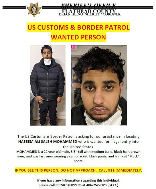 Sheriff’s offices in northwest Montana have posted wanted posters for Mohammed on social media. Standing at 5-foot-5, Mohammed is described as having a medium build, black hair and brown eyes. He was last seen wearing a camouflage jacket, black pants and high cut boots.” Authorities urged anyone who comes across Mohammed to call 911. They discouraged residents from approaching him.