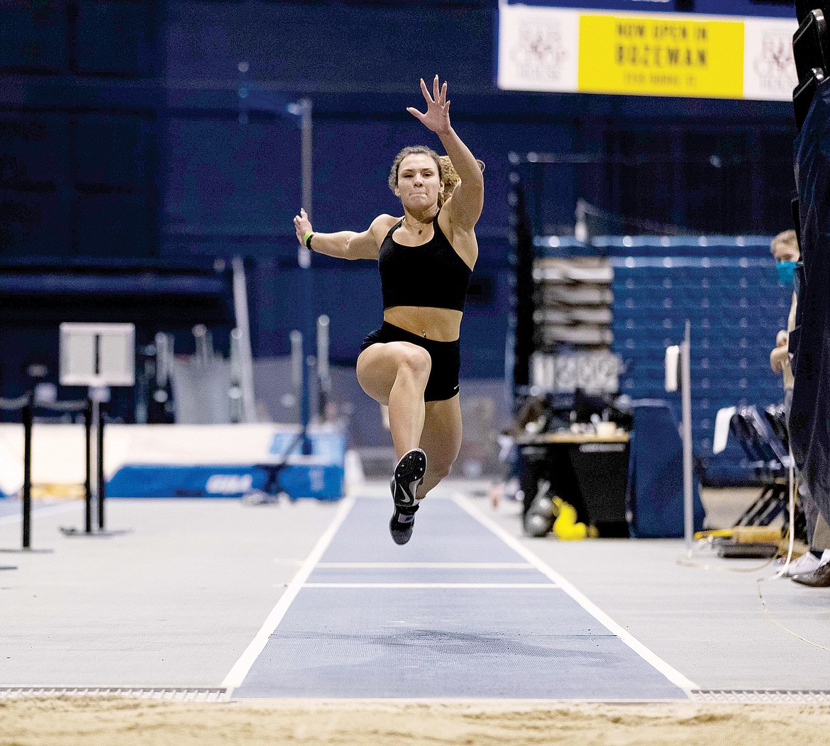 A familiar face was competing in Worthington Arena recently when the Montana State track and field program hosted Idaho State in its first event in nearly a year. Countless times before she’d gathered her pace and leapt into the sand pit that sits in Brick Breeden Fieldhouse at the end of a successful long or triple jump attempt.