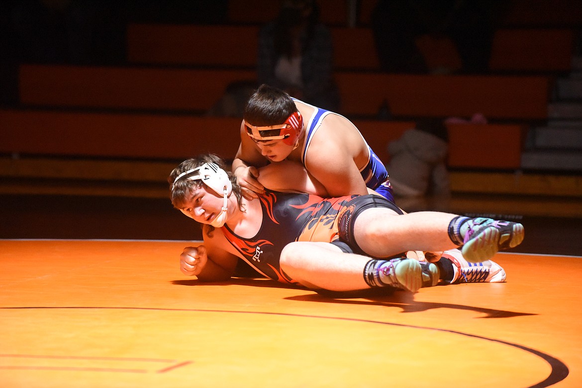 The match opened at 113 pounds with Clark Fork’s Ryder Hansen scoring a second-period over Plains’ Donnie Nelson. Hansen led 5-0 after one period and 13-0 before scoring the fall.