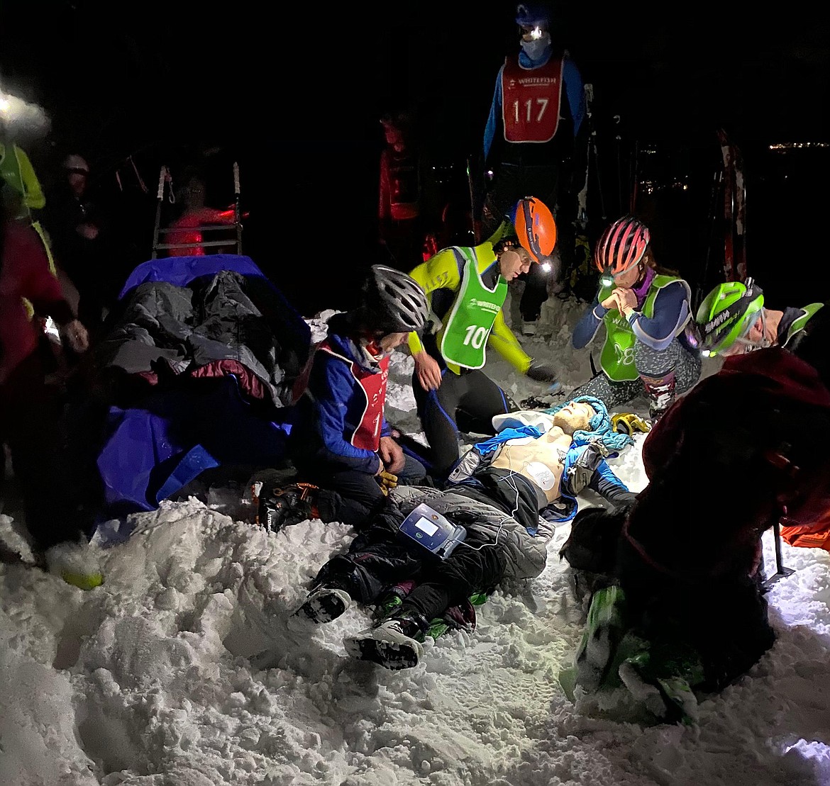 Even when the Whitefish Mountain Ski Patrol arrived to load Sanders on a toboggan and transfer him down to an ambulance, the three didn’t stop. The team of three followed along as the ski patrol maneuvered the snowmobile and toboggan through trees, ascents and descents, all the while continuing compressions.