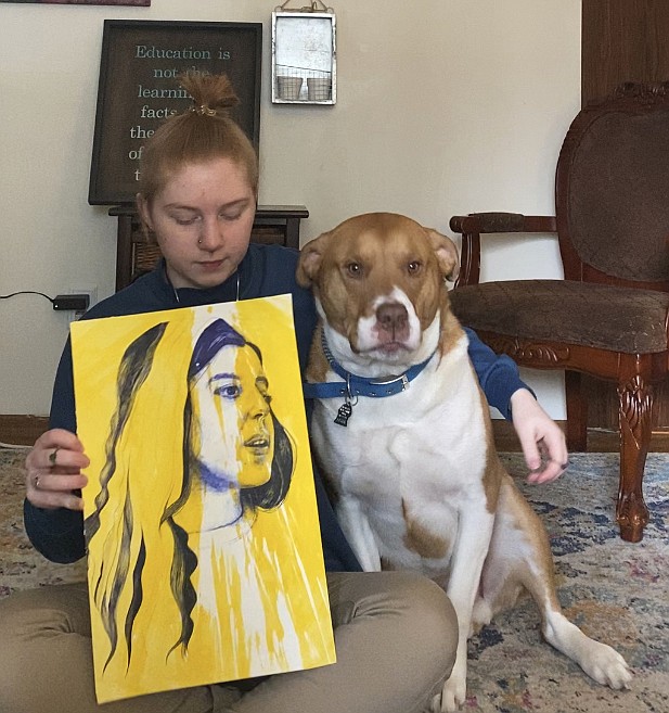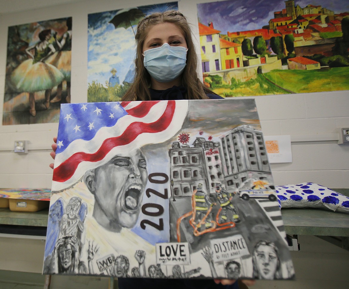 Junior Kenzie Eppey, who turns 17 next week, used acrylic paint to convey a tumultuous America filled with unrest and uncertainty.