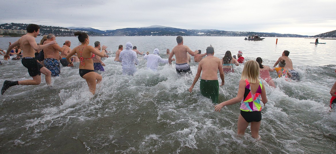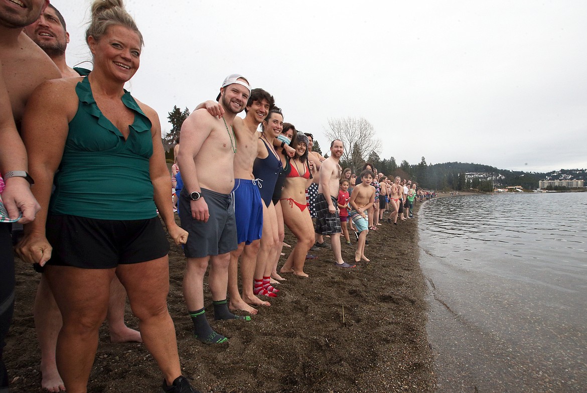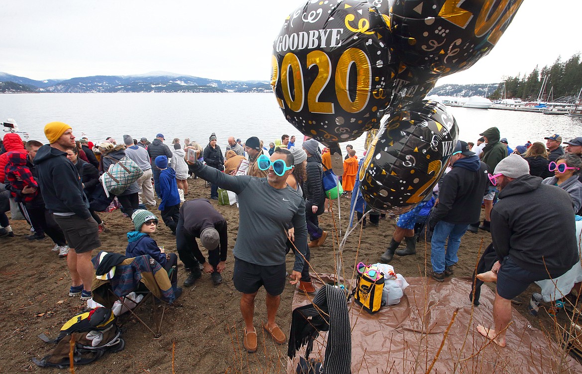 The Post Falls men were in the mood to start the new year in party mode — and with a leap into Lake Coeur d’Alene for the annual Polar Bear Plunge, their six-year tradition.