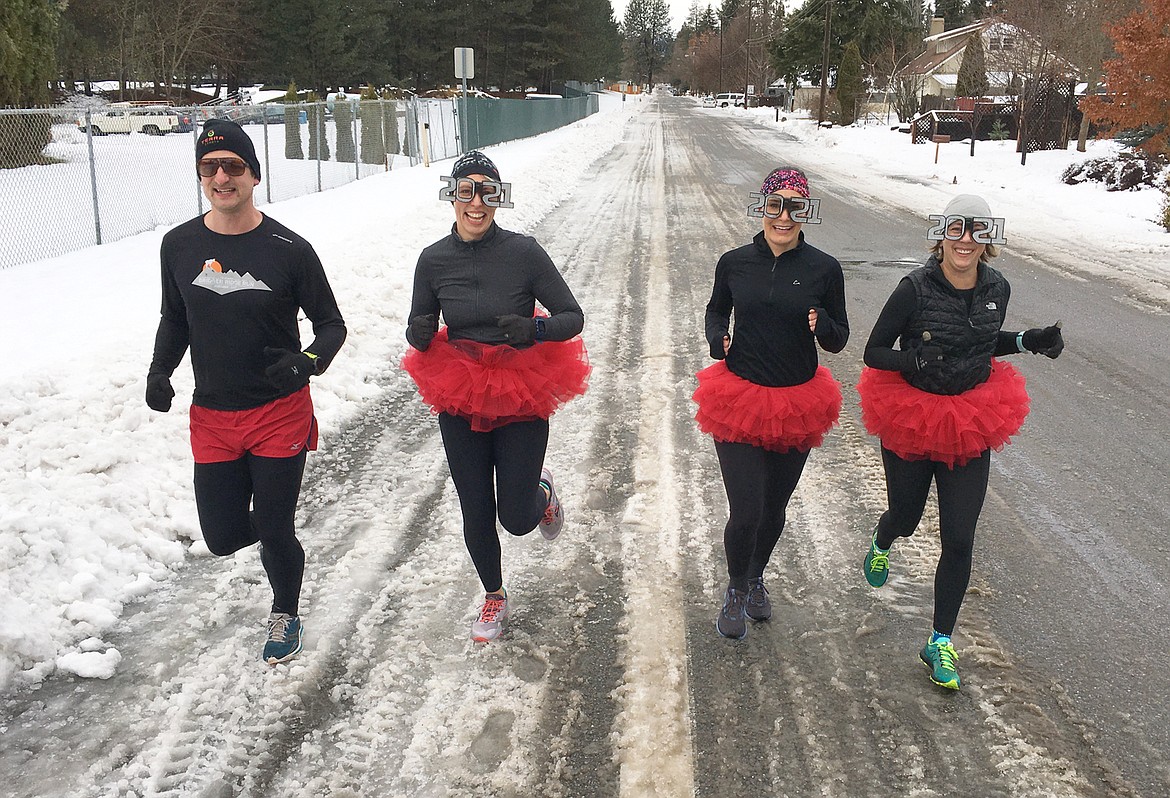 On a cold, cloudy Friday, some were walking and running on the North Idaho Centennial Trail. Others, like Caleb and Mandee Hiebert, Claire Kincaid-Slate and Autumn Deda, jogged on Mullan Avenue.