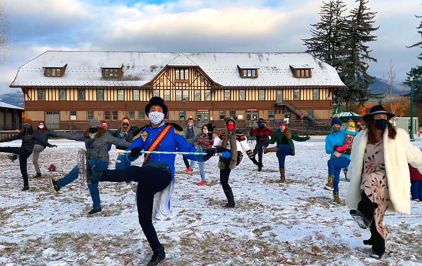 Whitefish actors Erica von Kleist, Mikey Winn, David Blair, Sarina Hart, and videographer Adam Pitman recently worked together to create a video that addresses visitors wearing masks, local artists struggling to find work, and the power of community. The video features scenes around downtown with performers asking folks to be a friend of the community by wearing a mask, and culminates with the visitors coming together with the locals in a masked socially distanced kick line in Depot Park.