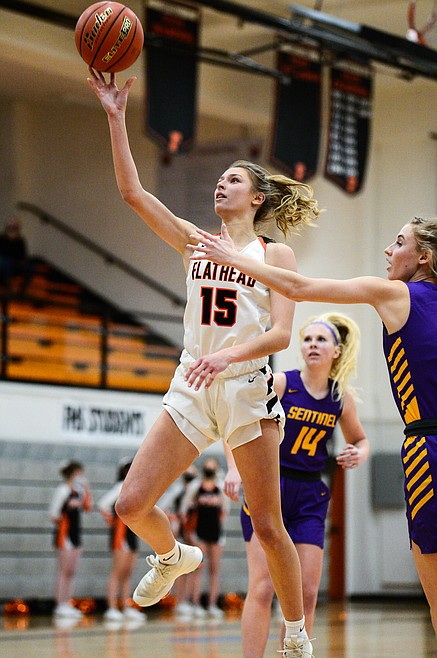 Sophomore Maddy Moy hit a 3-pointer, then a fast-break layup as Flathead drew to 51-34 with 4:05 left. That drew one timeout; after a free throw from Sentinel’s Challis Westwater, Bridget Crowley scored in the lane to cut the gap to 52-36. Another time out, at 2:30.